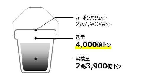 たとえば、産業革命以前と比べて地球の平均気温の上昇を1.5℃以内に抑えるためには、あとどれだけCO₂を排出できるか、という考え方です。この「排出可能な残量」は、地球全体にとっての「炭素の使い残し枠」と表現することもできます。