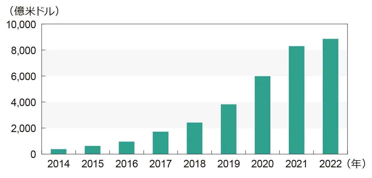 現在では、アメリカ、ヨーロッパ、中国を中心に市場が拡大しています。特に欧州では、再生可能エネルギーや鉄道インフラなどの大型プロジェクトの資金調達に活用されています。