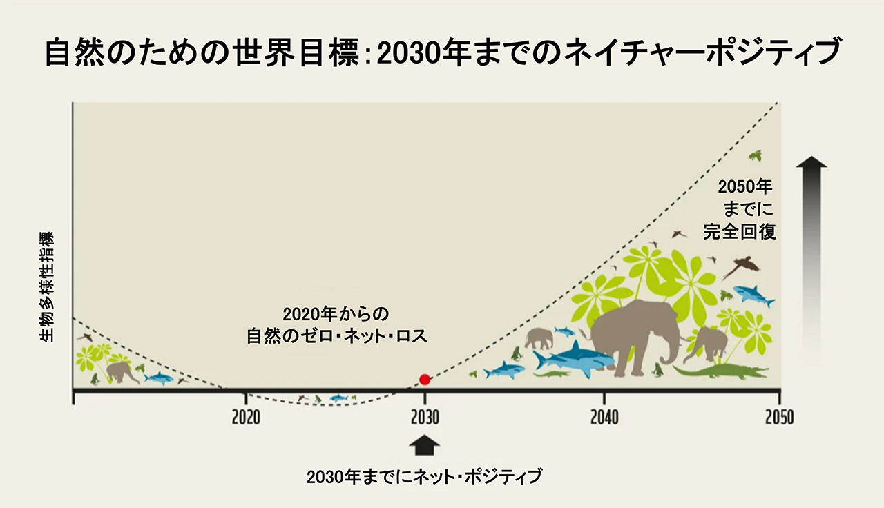 そのような中、「自然の喪失を止める」だけでは不十分であり、「自然を回復し、より良い状態に戻す」という前向きな目標が求められるようになったのです。これが、ネイチャーポジティブというアプローチが生まれた根本的な背景です。