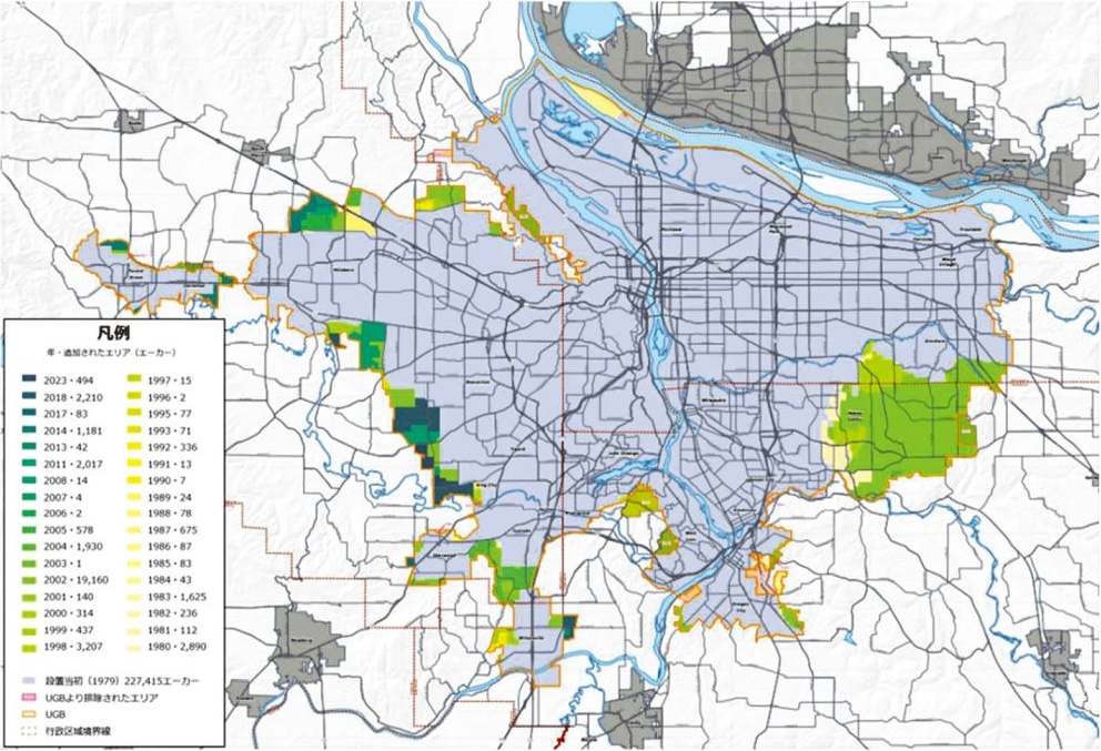 欧米では、無秩序な拡大を抑えるため、都市の成長を制限する政策が導入されています。たとえば、アメリカ・オレゴン州のポートランドでは「アーバン・グロース・バウンダリー(都市成長境界線)」を設定し、一定の範囲外では新たな開発を制限しています。その結果、中心部への人口回帰が進み、公共交通や商業施設の効率的な運営が実現しました。
